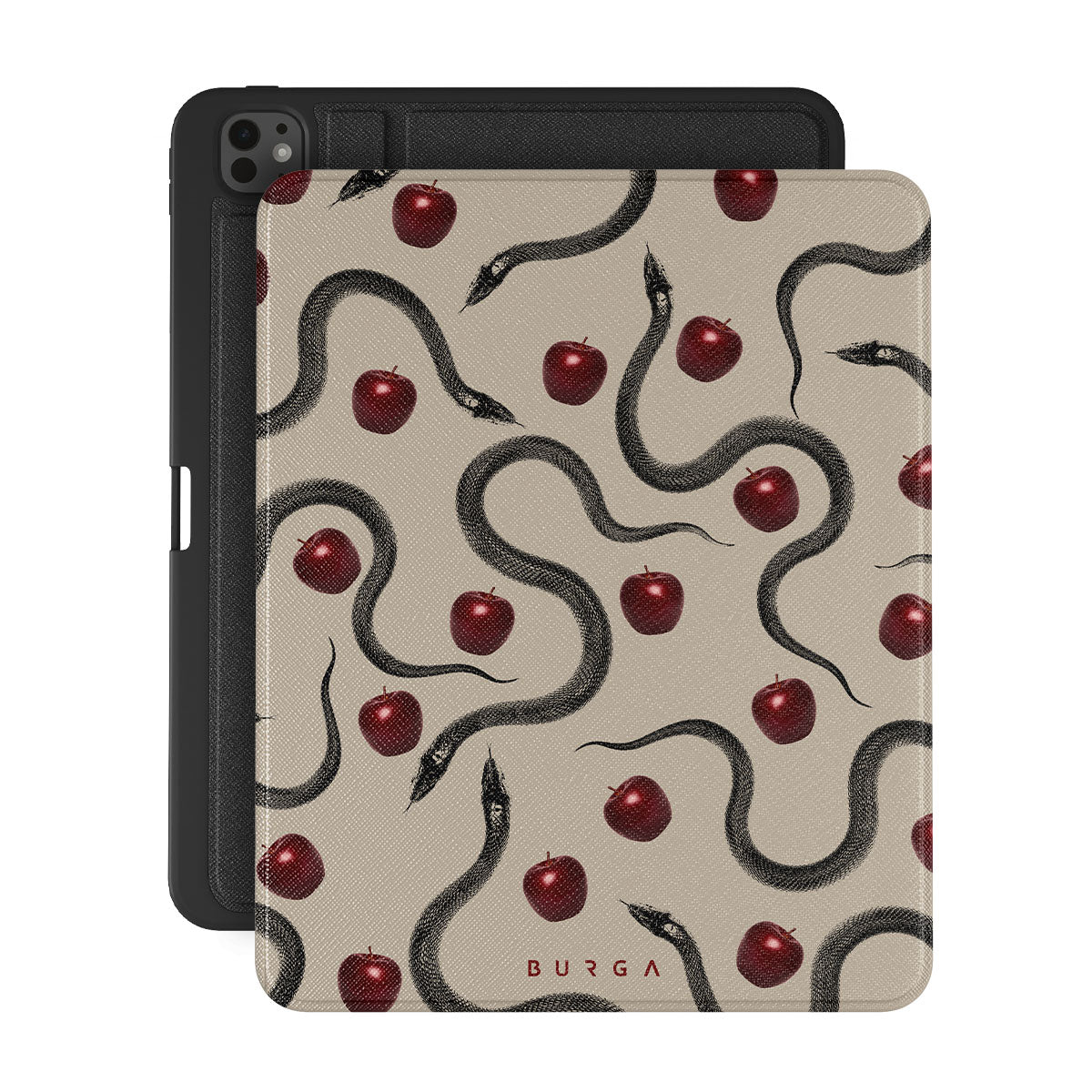 Questo design presenta: mele rosse lucide, serpenti attorcigliati, tonalità beige.