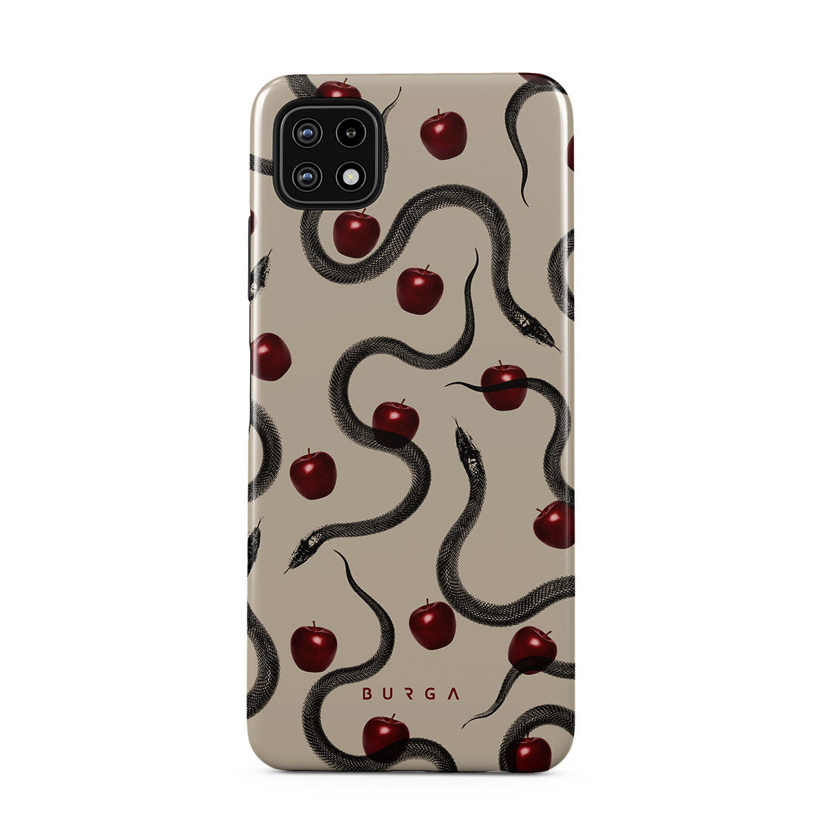 Questo design presenta: mele rosse lucide, serpenti attorcigliati, tonalità beige.