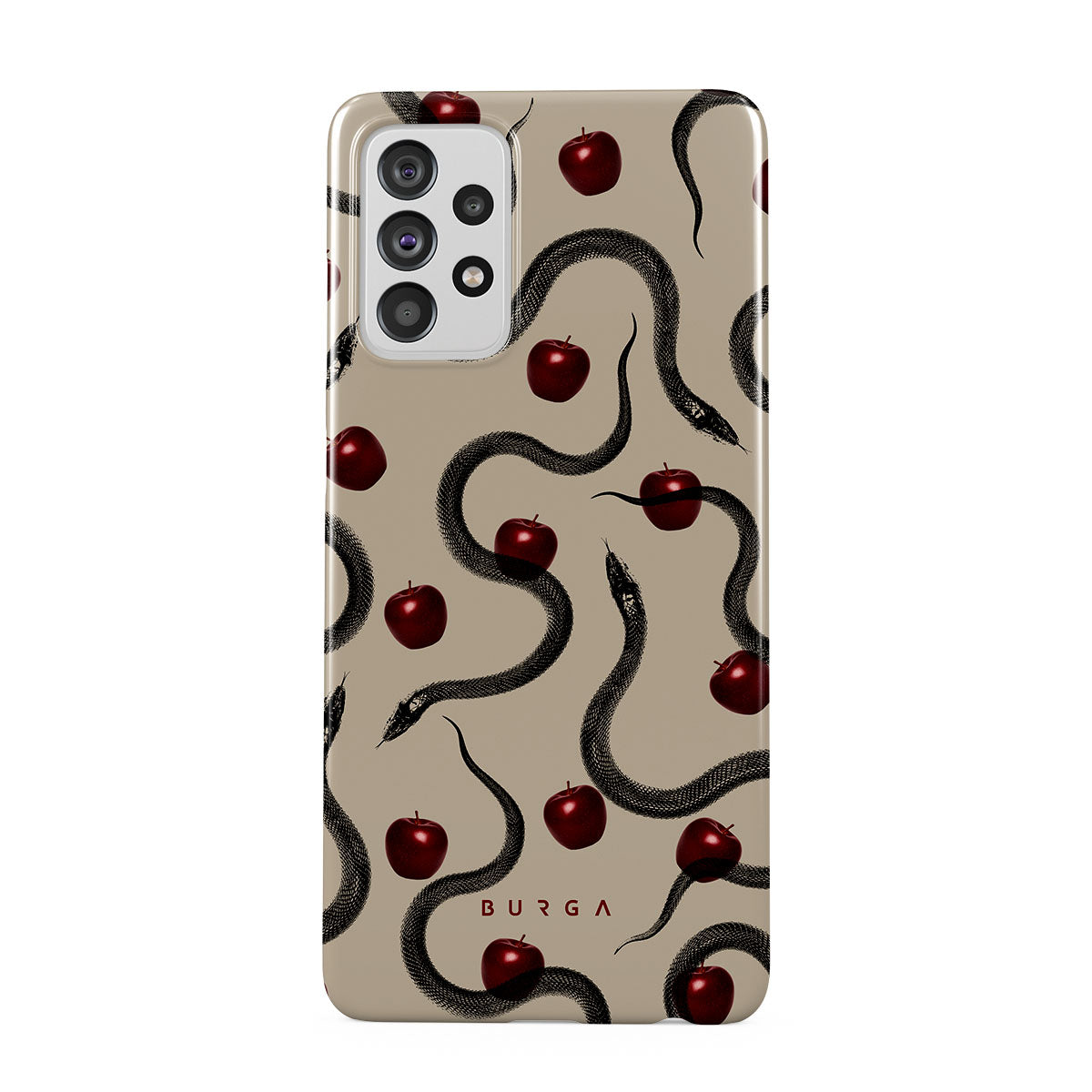 Questo design presenta: mele rosse lucide, serpenti attorcigliati, tonalità beige.