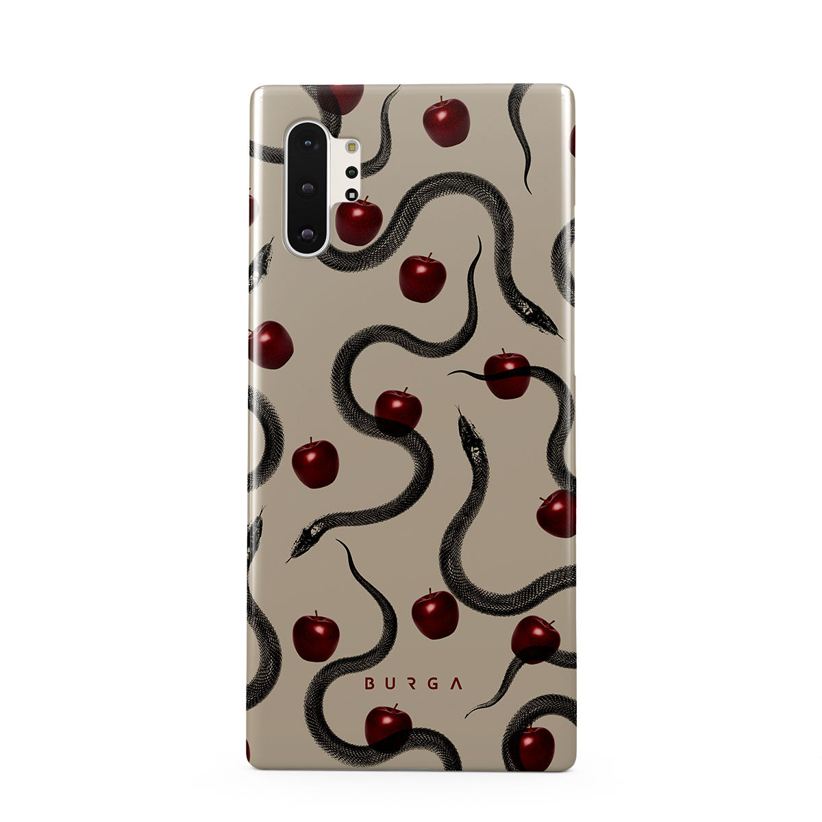 Questo design presenta: mele rosse lucide, serpenti attorcigliati, tonalità beige.