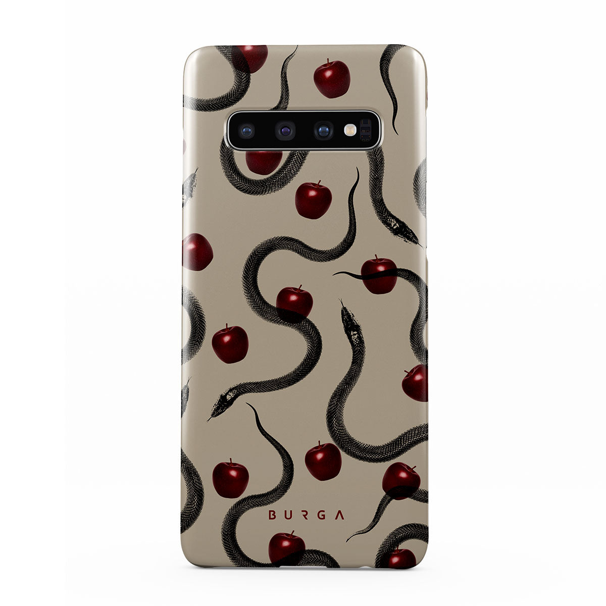 Questo design presenta: mele rosse lucide, serpenti attorcigliati, tonalità beige.