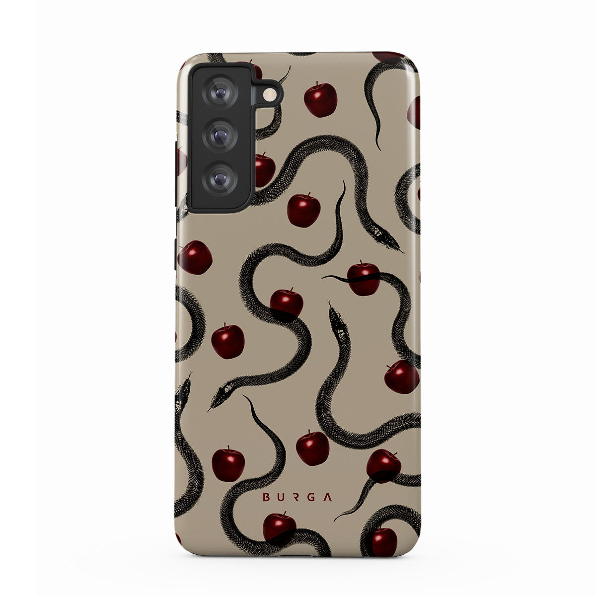 Questo design presenta: mele rosse lucide, serpenti attorcigliati, tonalità beige.