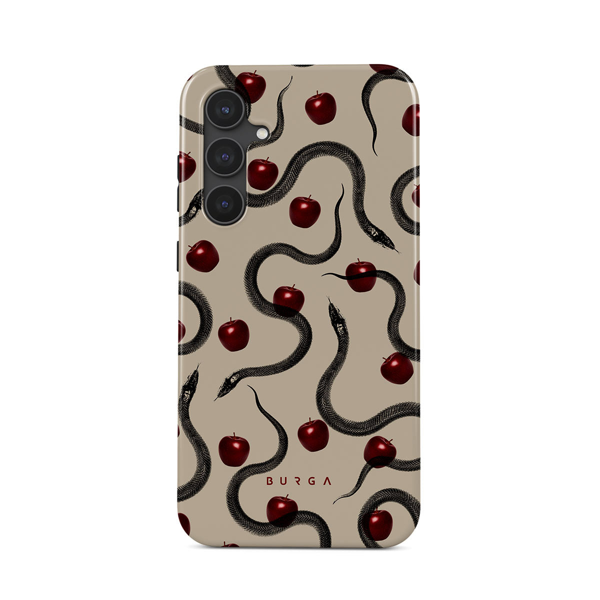 Questo design presenta: mele rosse lucide, serpenti attorcigliati, tonalità beige.