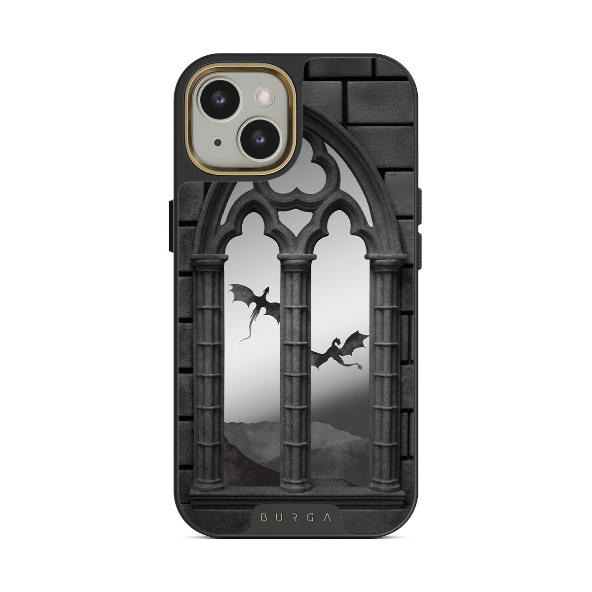 Questo design include: archi gotici, draghi volanti, creature misteriose, inserimento di specchio