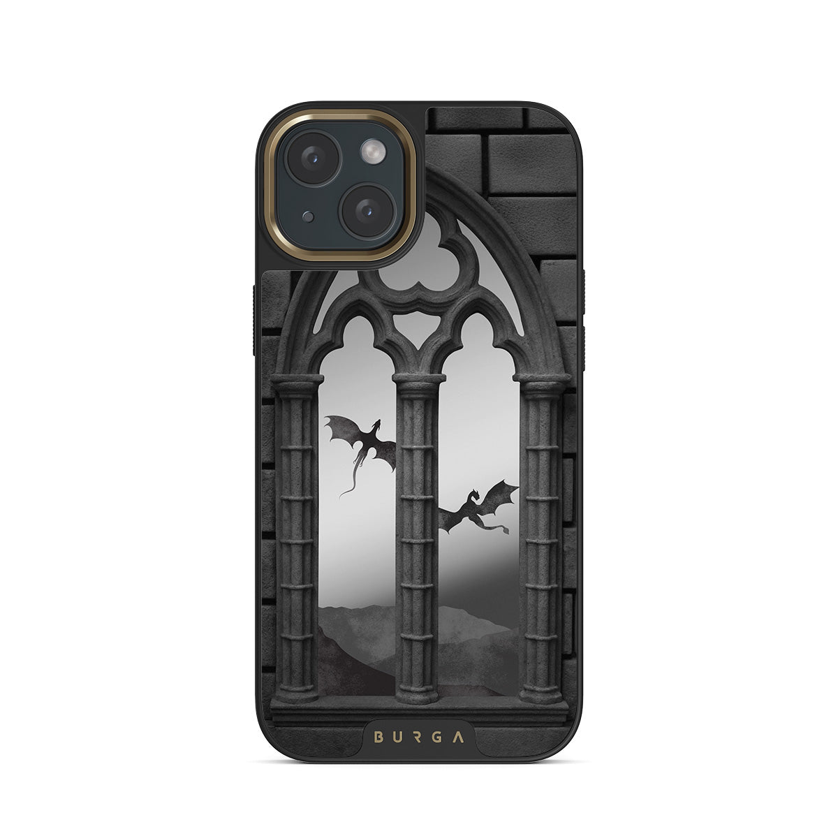 Questo design include: archi gotici, draghi volanti, creature misteriose, inserimento di specchio