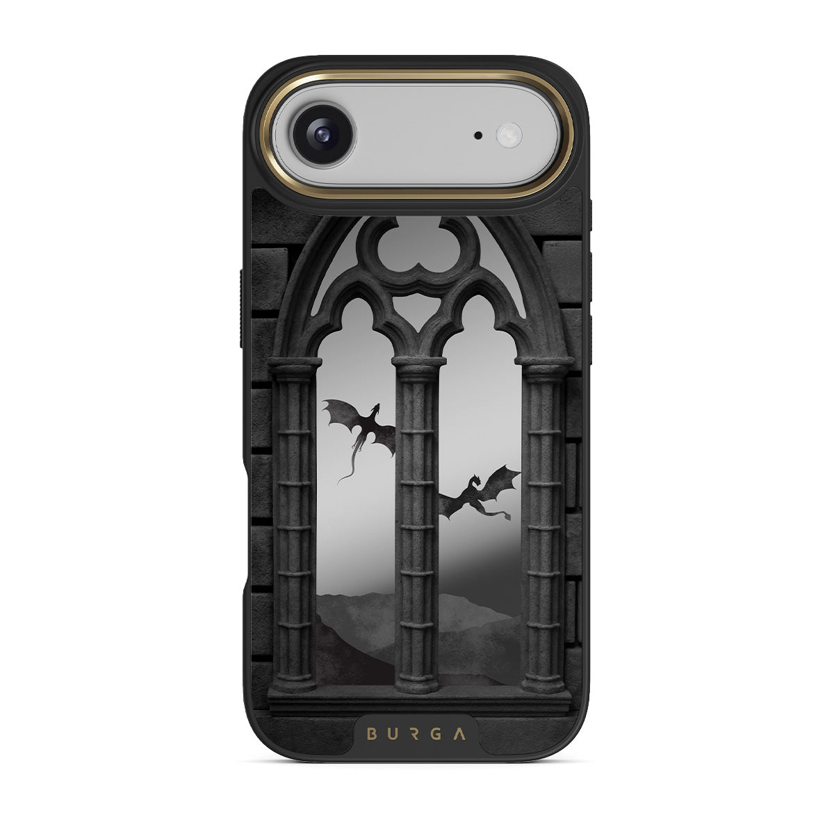 Questo design include: archi gotici, draghi volanti, creature misteriose, inserimento di specchio