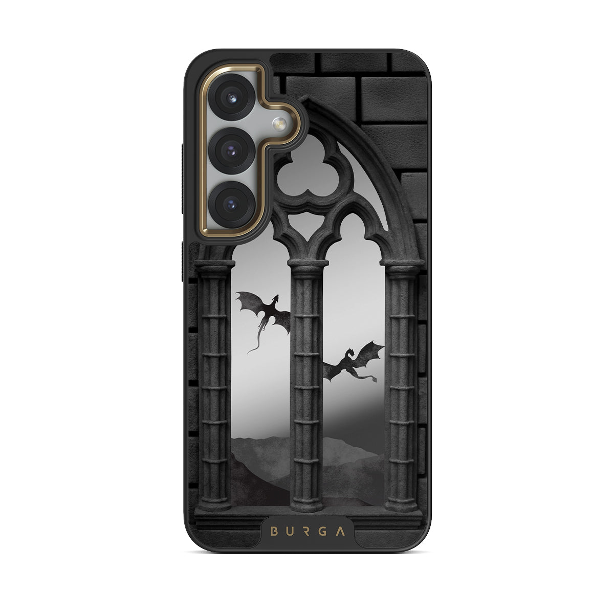 Questo design include: archi gotici, draghi volanti, creature misteriose, inserimento di specchio