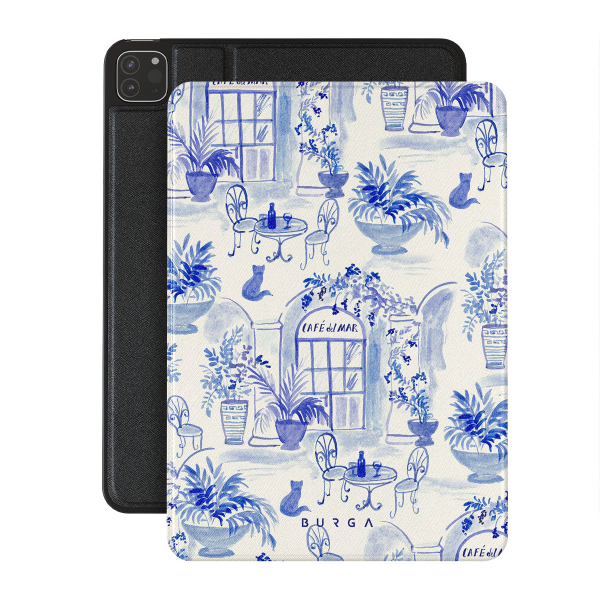Questo design include: Toni blu morbidi, motivi costieri, elementi da caffè, stile minimalista, motivi retrò, motivi mediterranei.