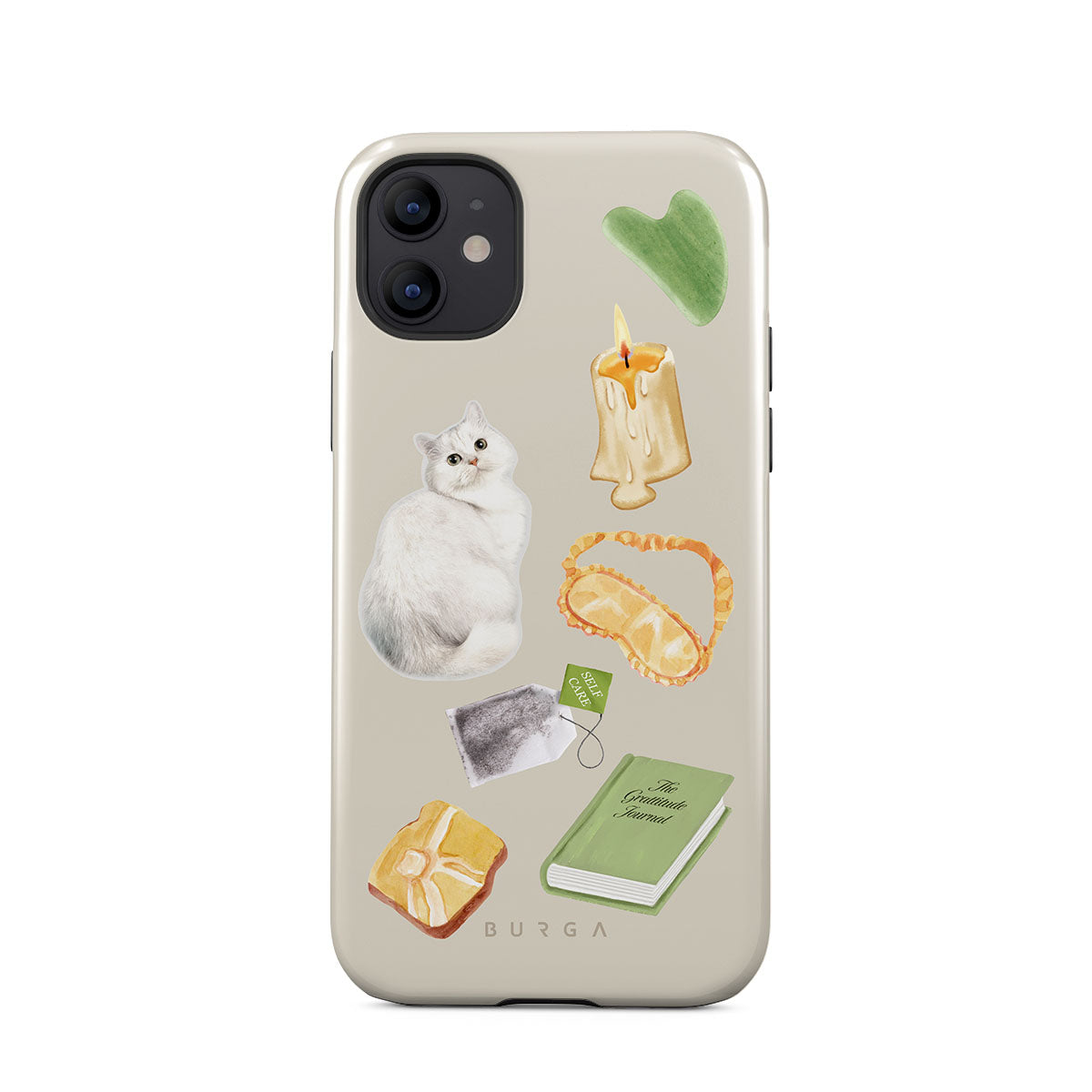 Questo design include: gatto bianco, libro verde, candela, Gua Sha bar, maschera per dormire, bustina di tè, cristallo giallo.