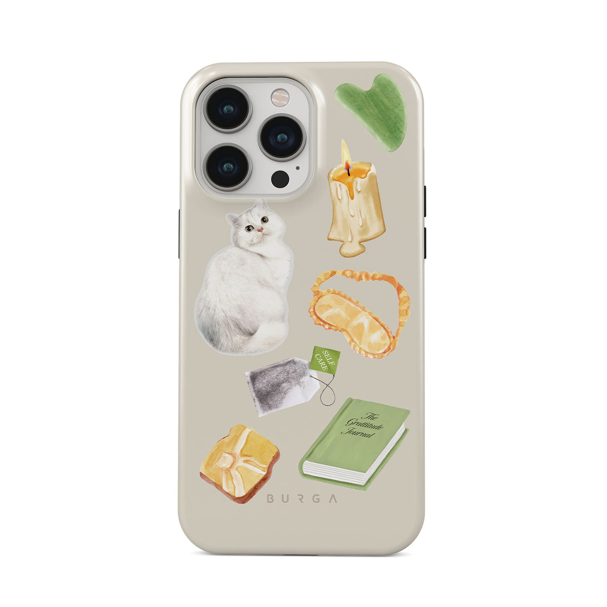 Questo design include: gatto bianco, libro verde, candela, Gua Sha bar, maschera per dormire, bustina di tè, cristallo giallo.