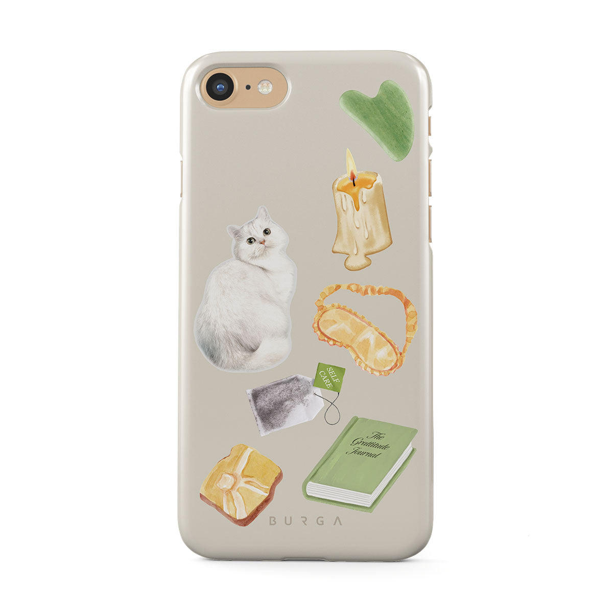 Questo design include: gatto bianco, libro verde, candela, Gua Sha bar, maschera per dormire, bustina di tè, cristallo giallo.