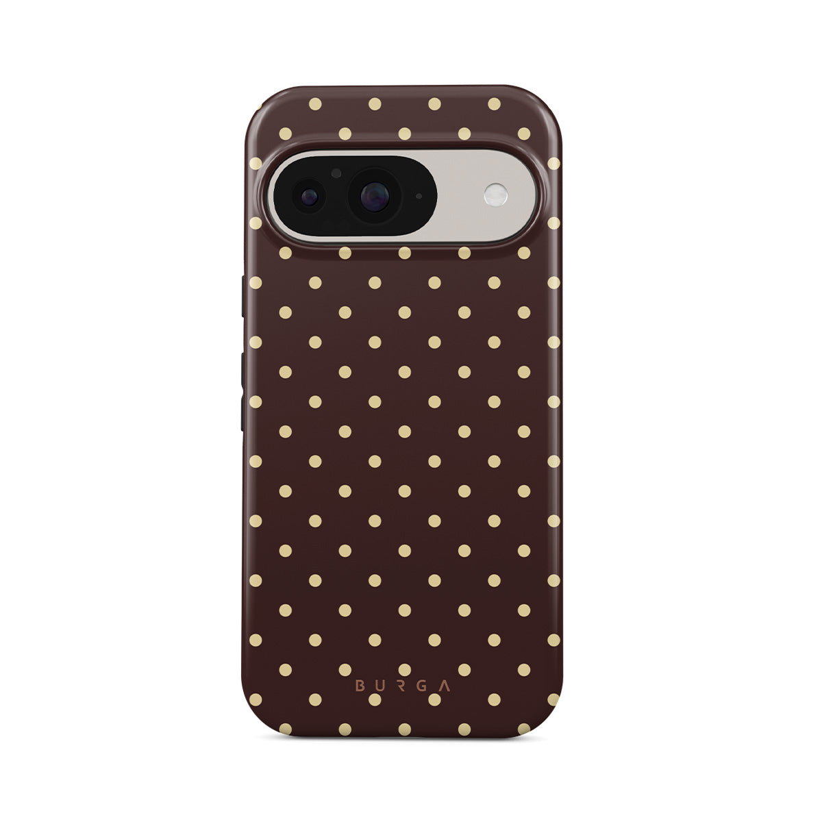 Questo design include: sfondo marrone, pois beige