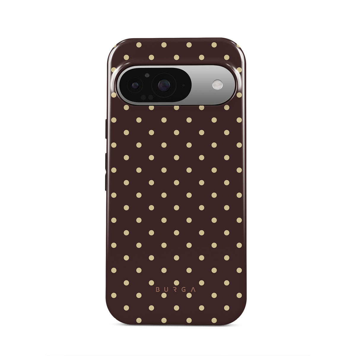 Questo design include: sfondo marrone, pois beige