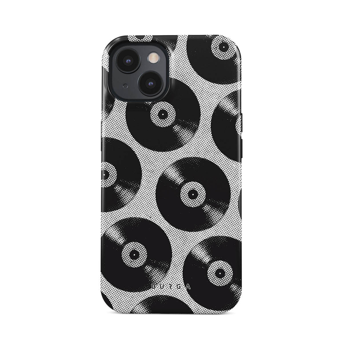 Questo design include: dischi in vinile, colore nero, colore bianco, musica