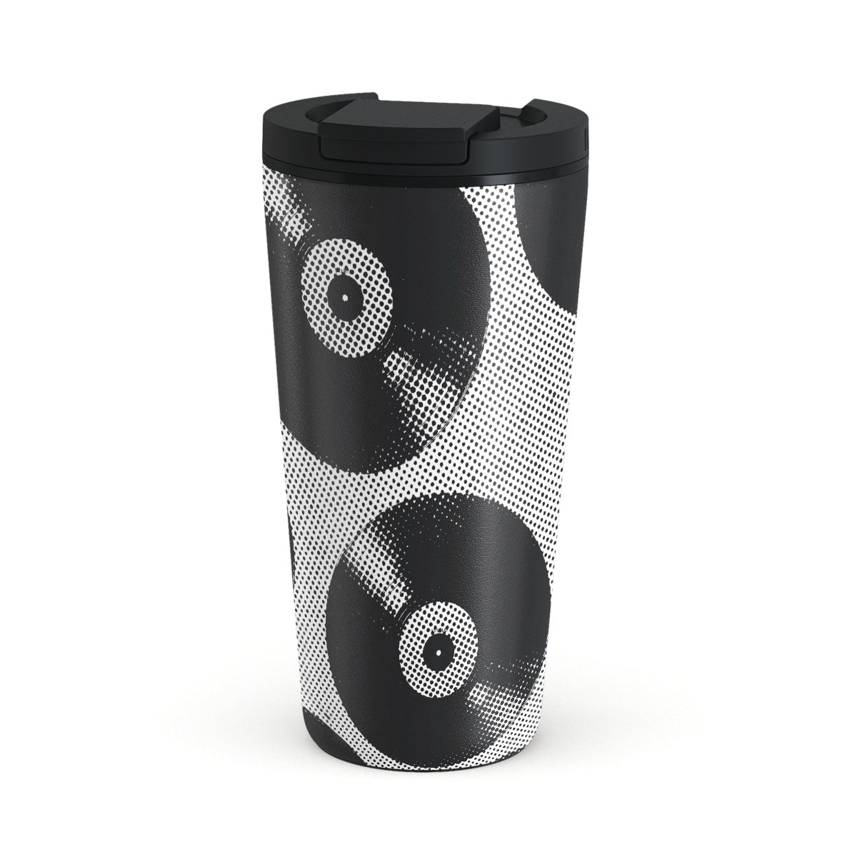 Questo design include: dischi in vinile, colore nero, colore bianco, musica