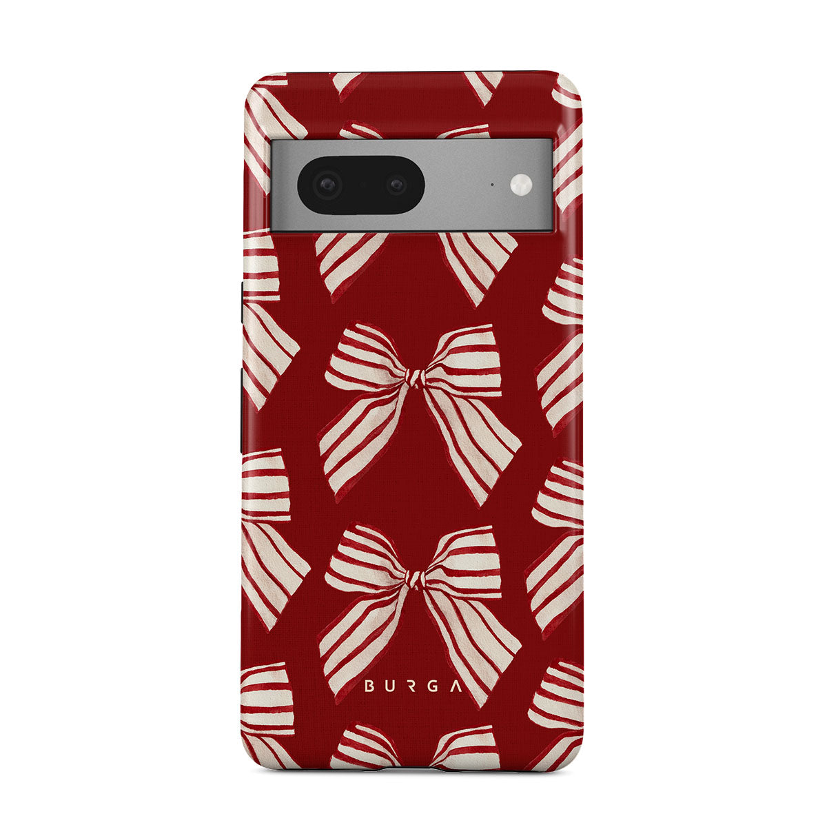 Elementi distintivi: fiocchi, nastri, rosso, bianco, motivo natalizio