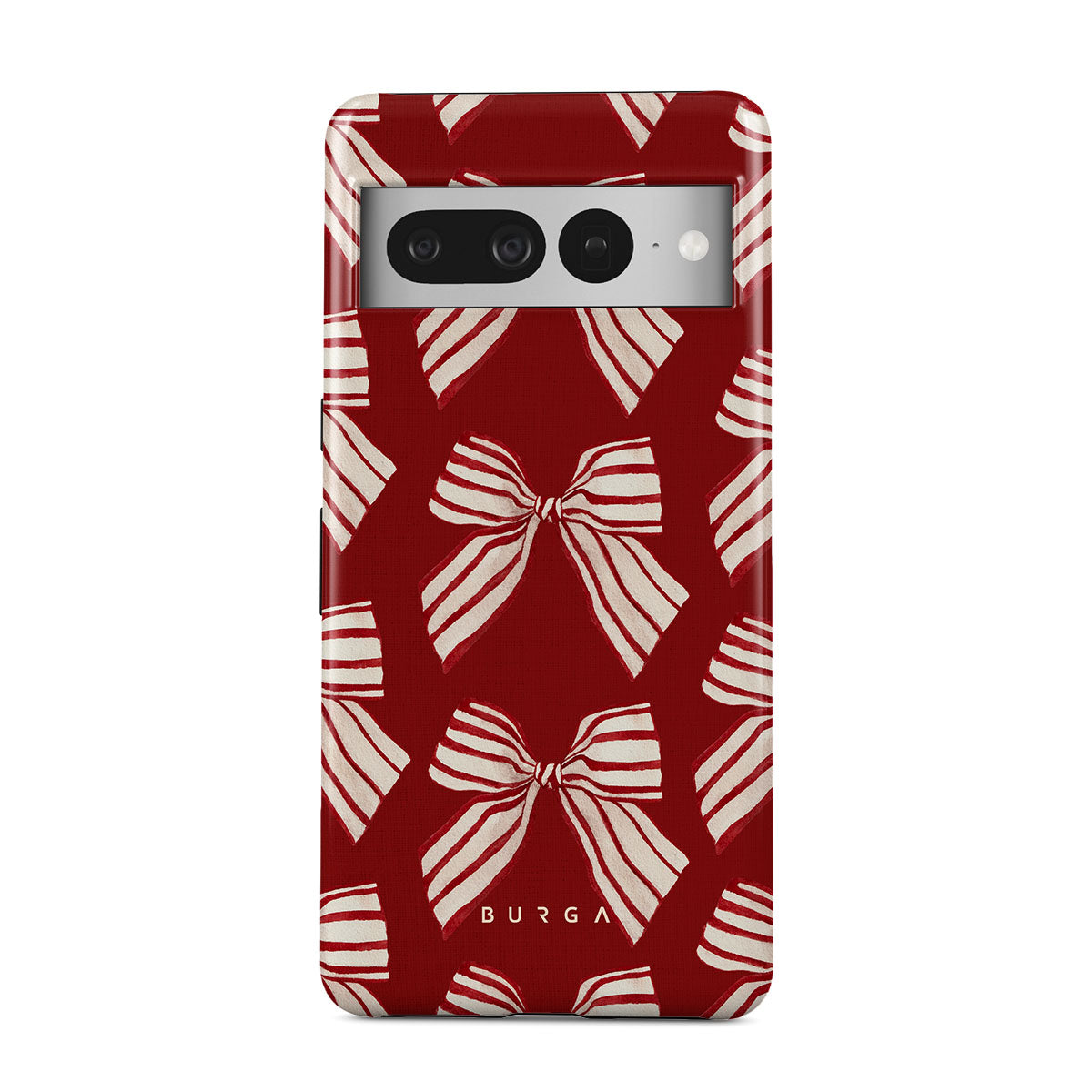Elementi distintivi: fiocchi, nastri, rosso, bianco, motivo natalizio