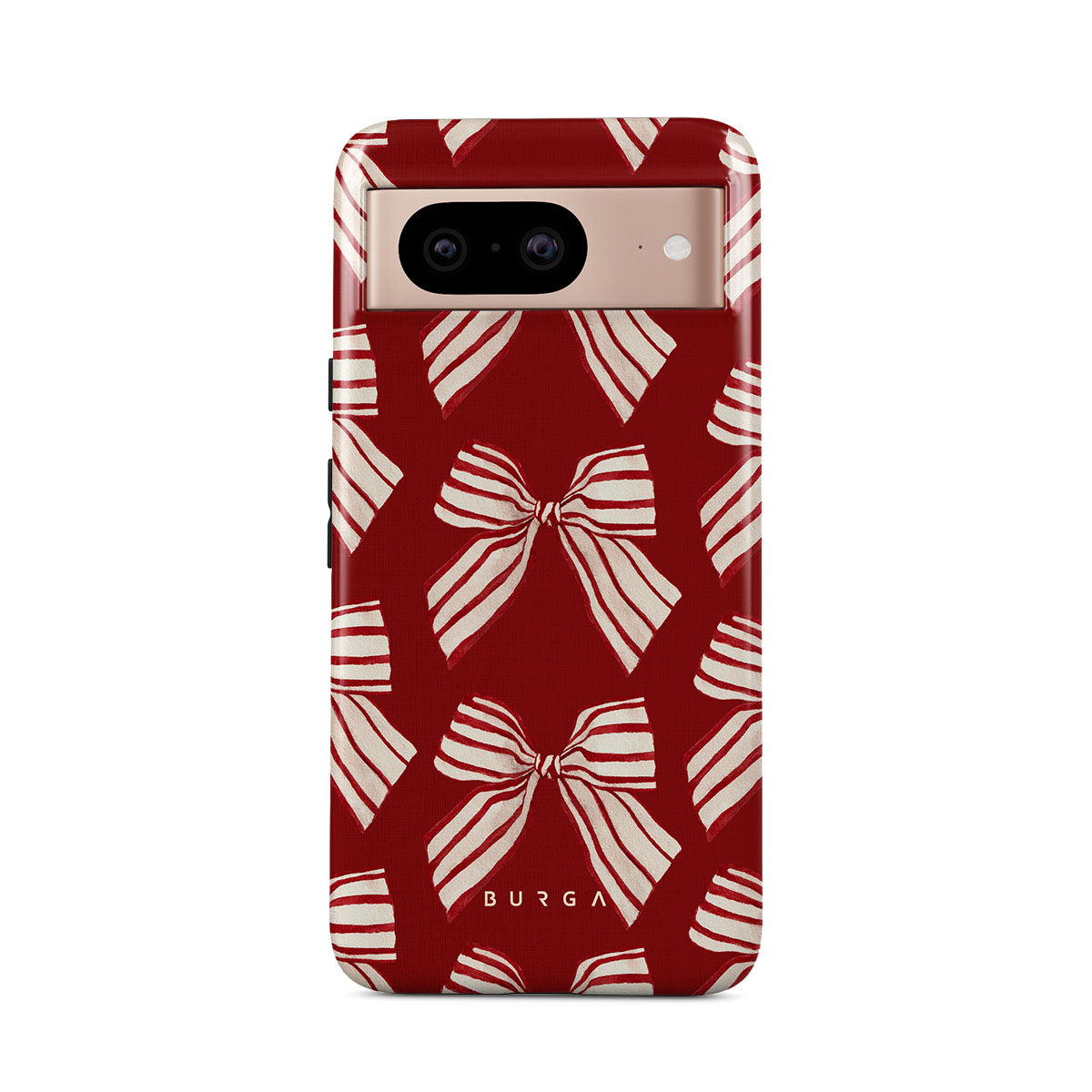 Elementi distintivi: fiocchi, nastri, rosso, bianco, motivo natalizio