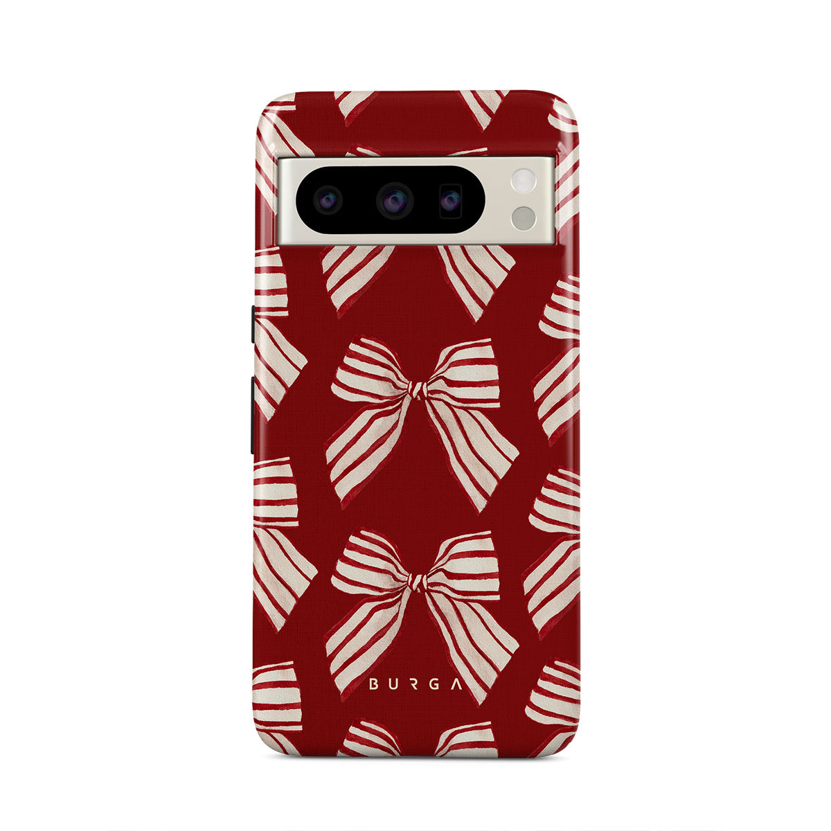 Elementi distintivi: fiocchi, nastri, rosso, bianco, motivo natalizio