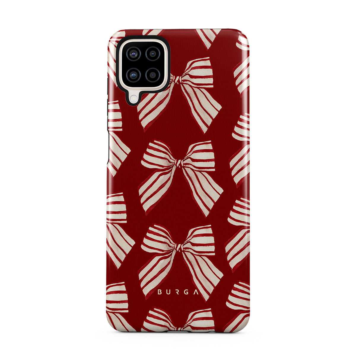 Elementi distintivi: fiocchi, nastri, rosso, bianco, motivo natalizio