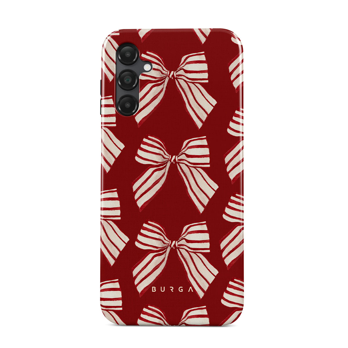Elementi distintivi: fiocchi, nastri, rosso, bianco, motivo natalizio