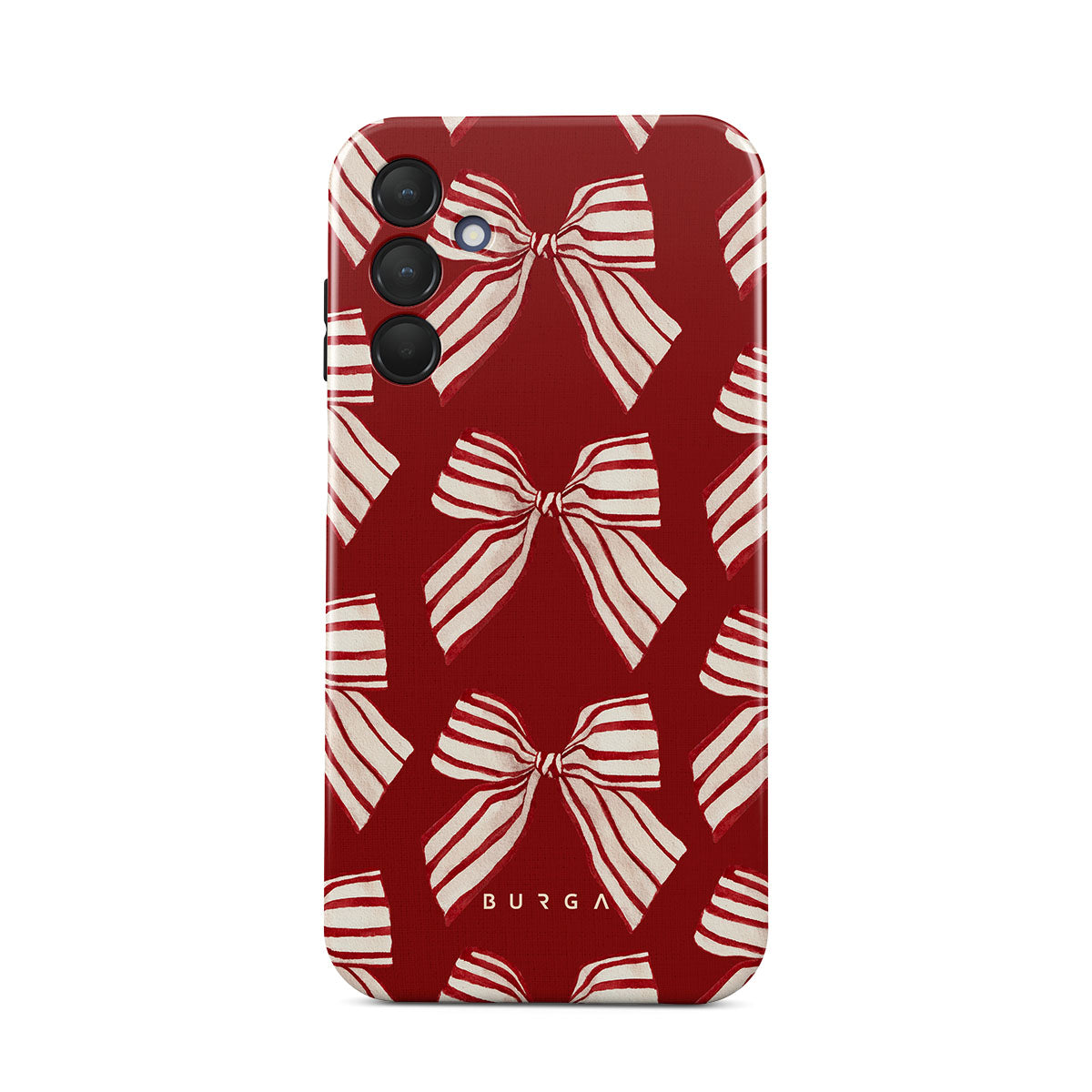 Elementi distintivi: fiocchi, nastri, rosso, bianco, motivo natalizio