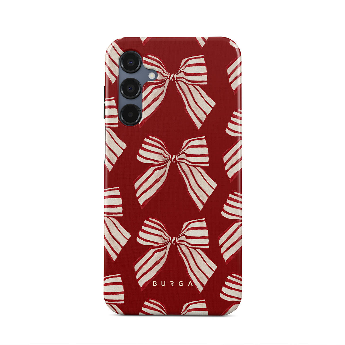Elementi distintivi: fiocchi, nastri, rosso, bianco, motivo natalizio