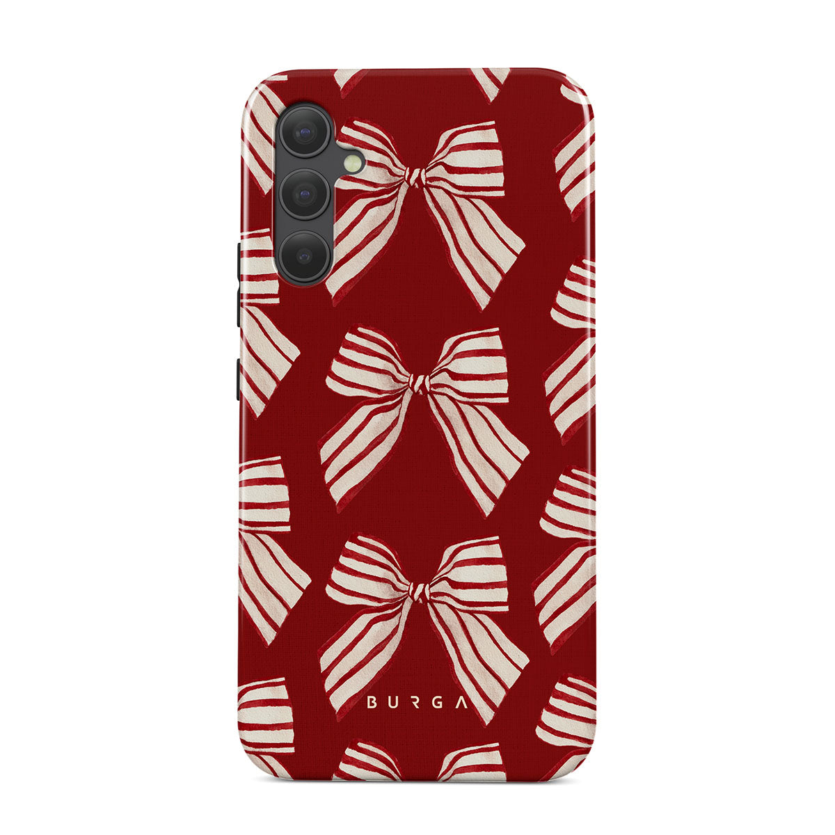 Elementi distintivi: fiocchi, nastri, rosso, bianco, motivo natalizio