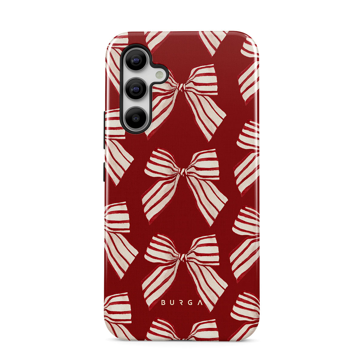 Elementi distintivi: fiocchi, nastri, rosso, bianco, motivo natalizio