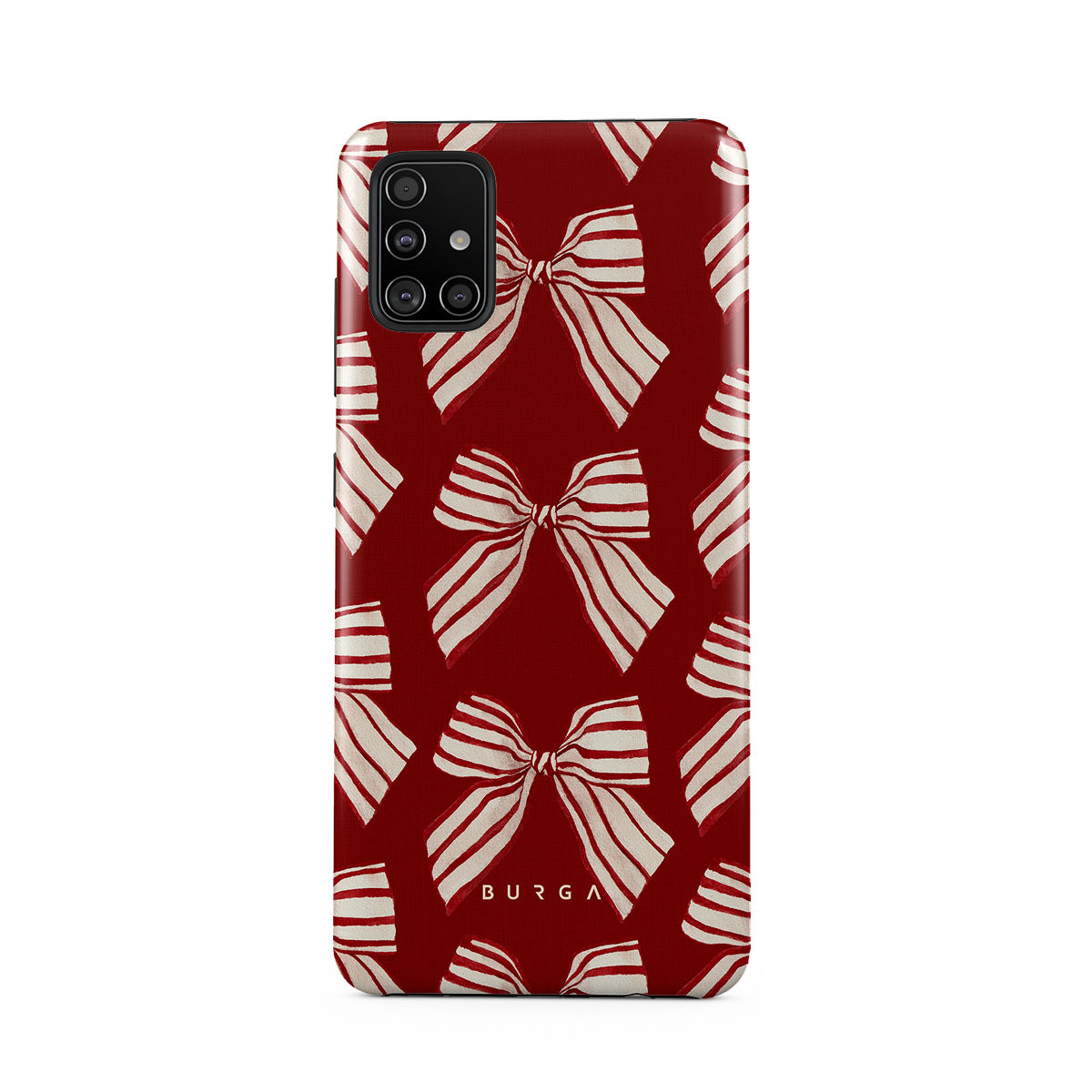 Elementi distintivi: fiocchi, nastri, rosso, bianco, motivo natalizio
