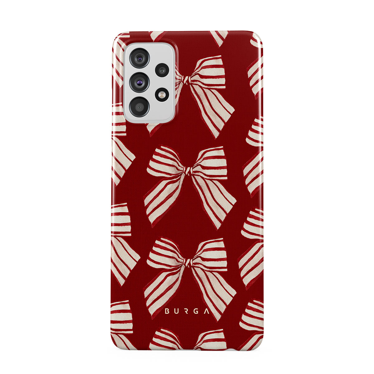 Elementi distintivi: fiocchi, nastri, rosso, bianco, motivo natalizio
