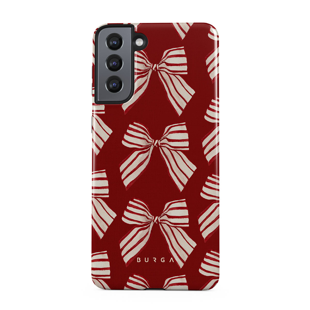 Elementi distintivi: fiocchi, nastri, rosso, bianco, motivo natalizio