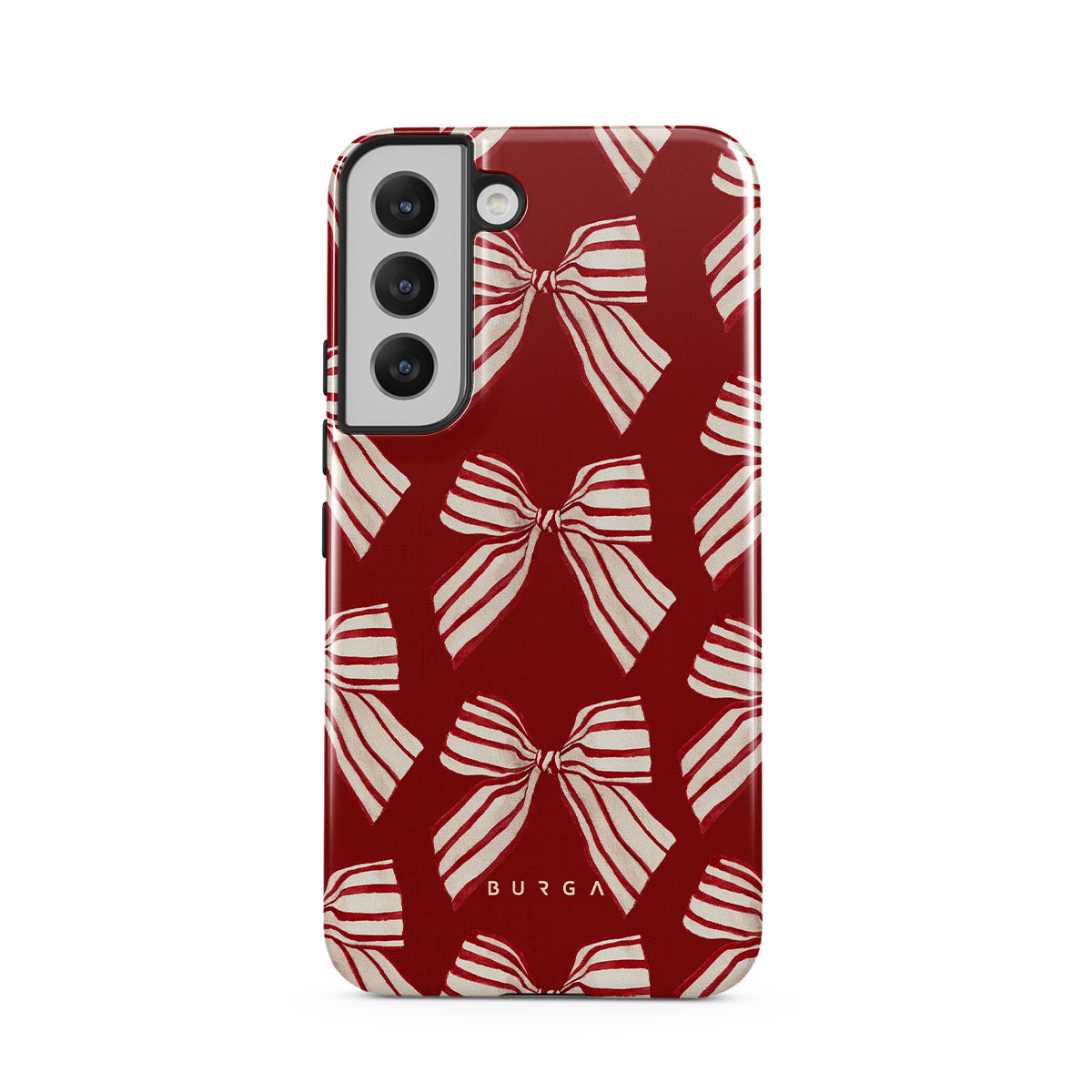 Elementi distintivi: fiocchi, nastri, rosso, bianco, motivo natalizio