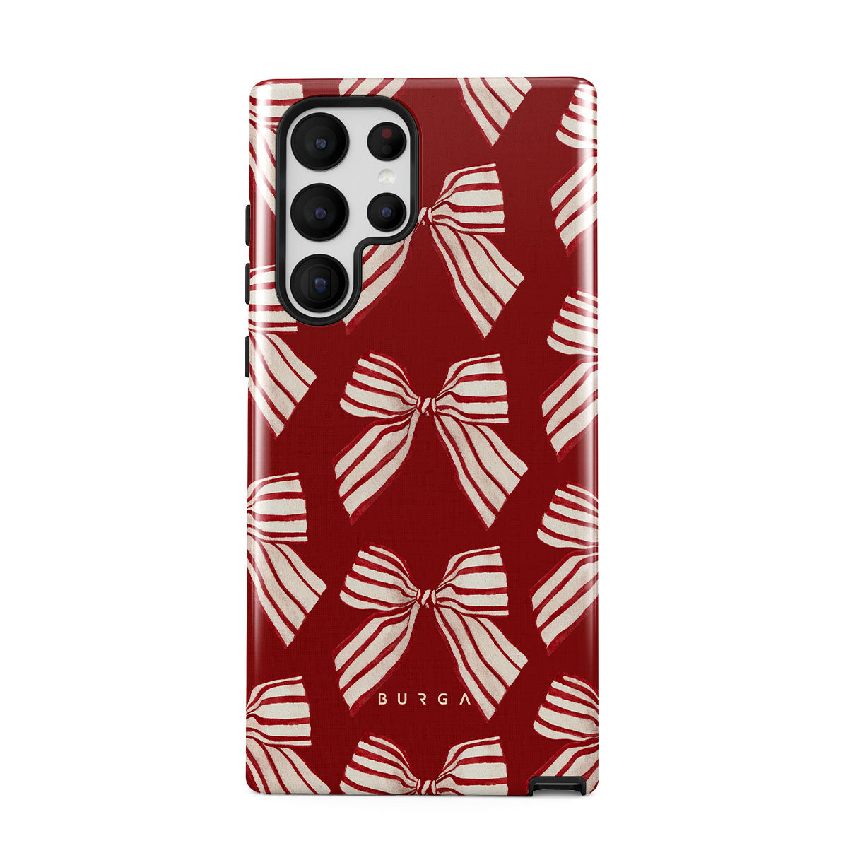 Elementi distintivi: fiocchi, nastri, rosso, bianco, motivo natalizio
