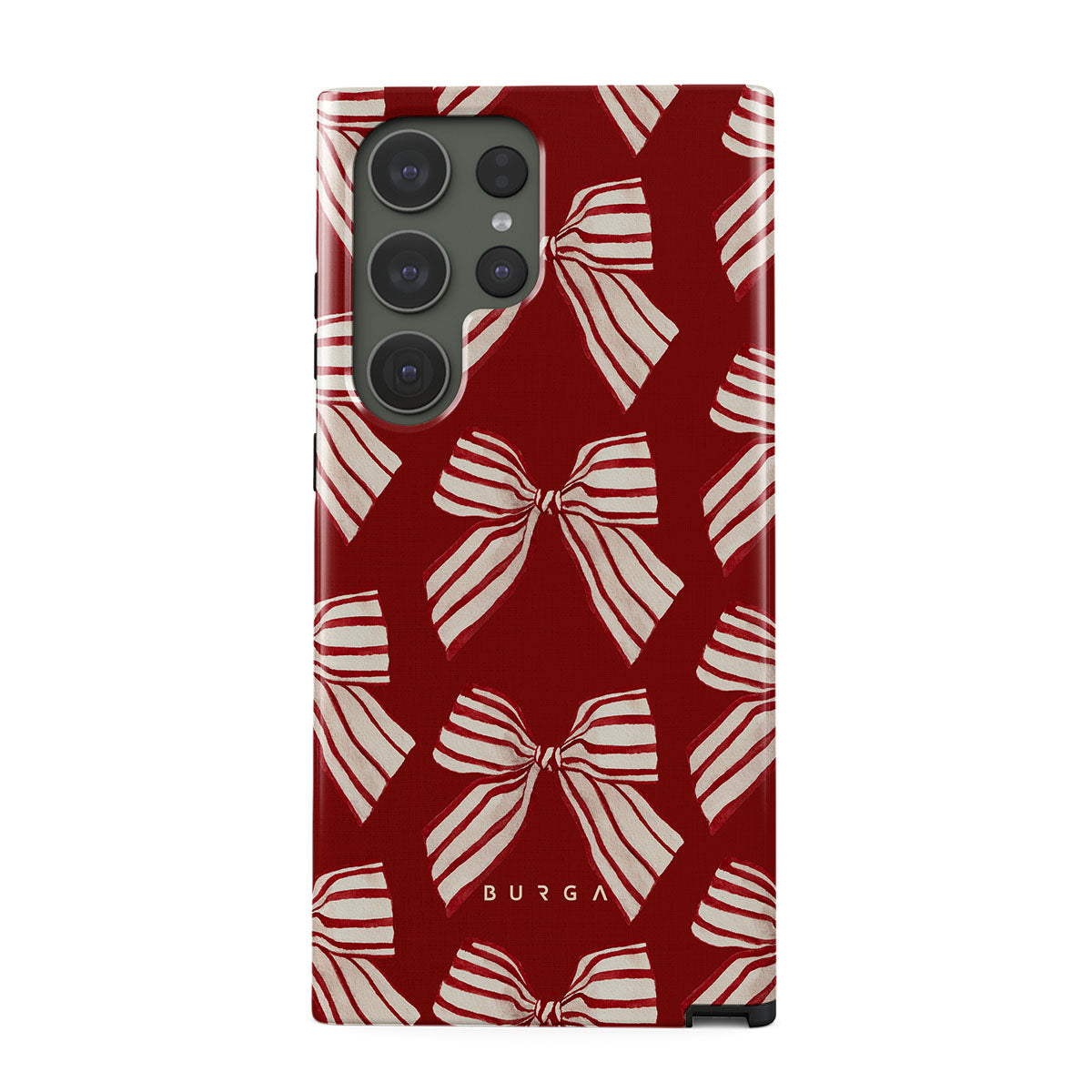 Elementi distintivi: fiocchi, nastri, rosso, bianco, motivo natalizio