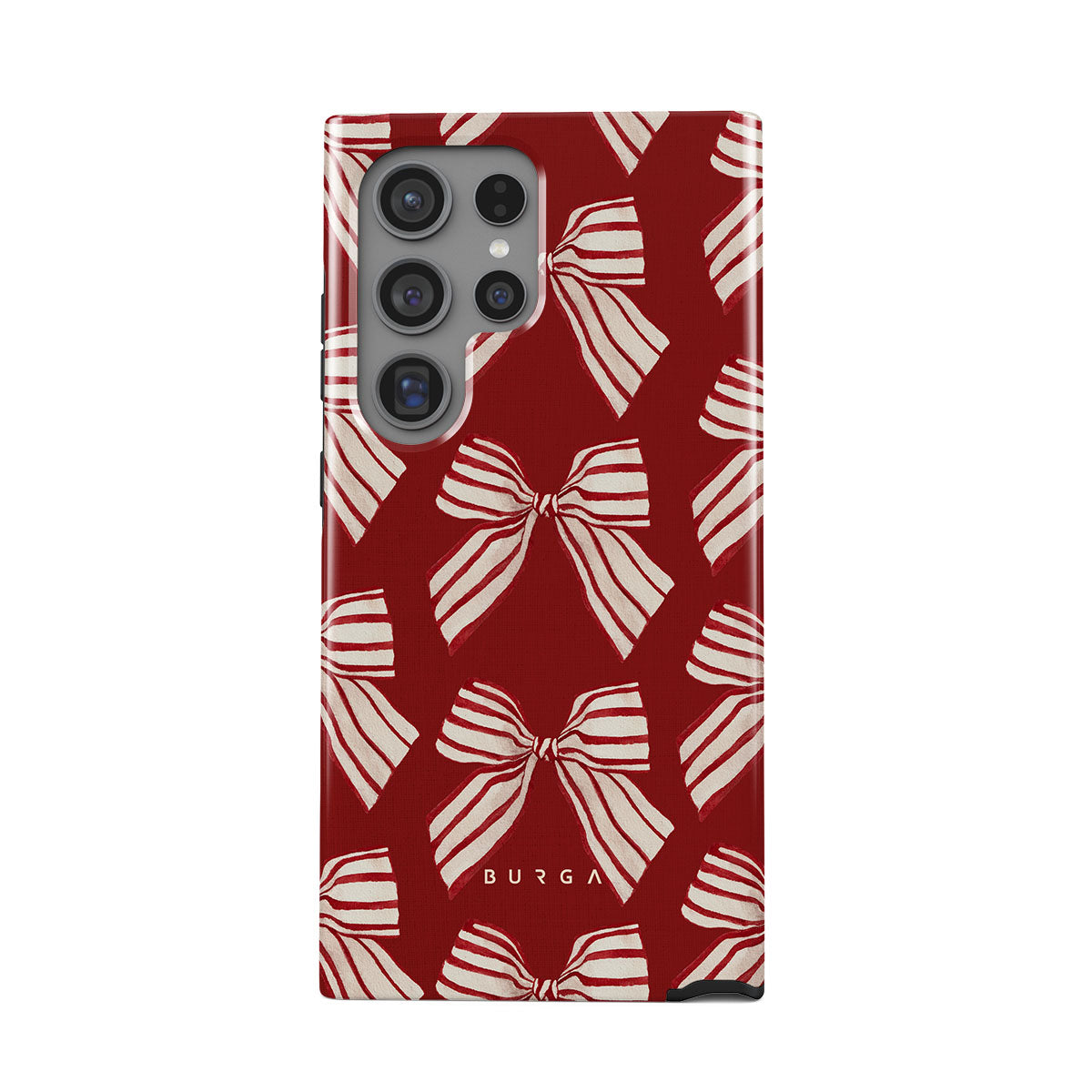 Elementi distintivi: fiocchi, nastri, rosso, bianco, motivo natalizio