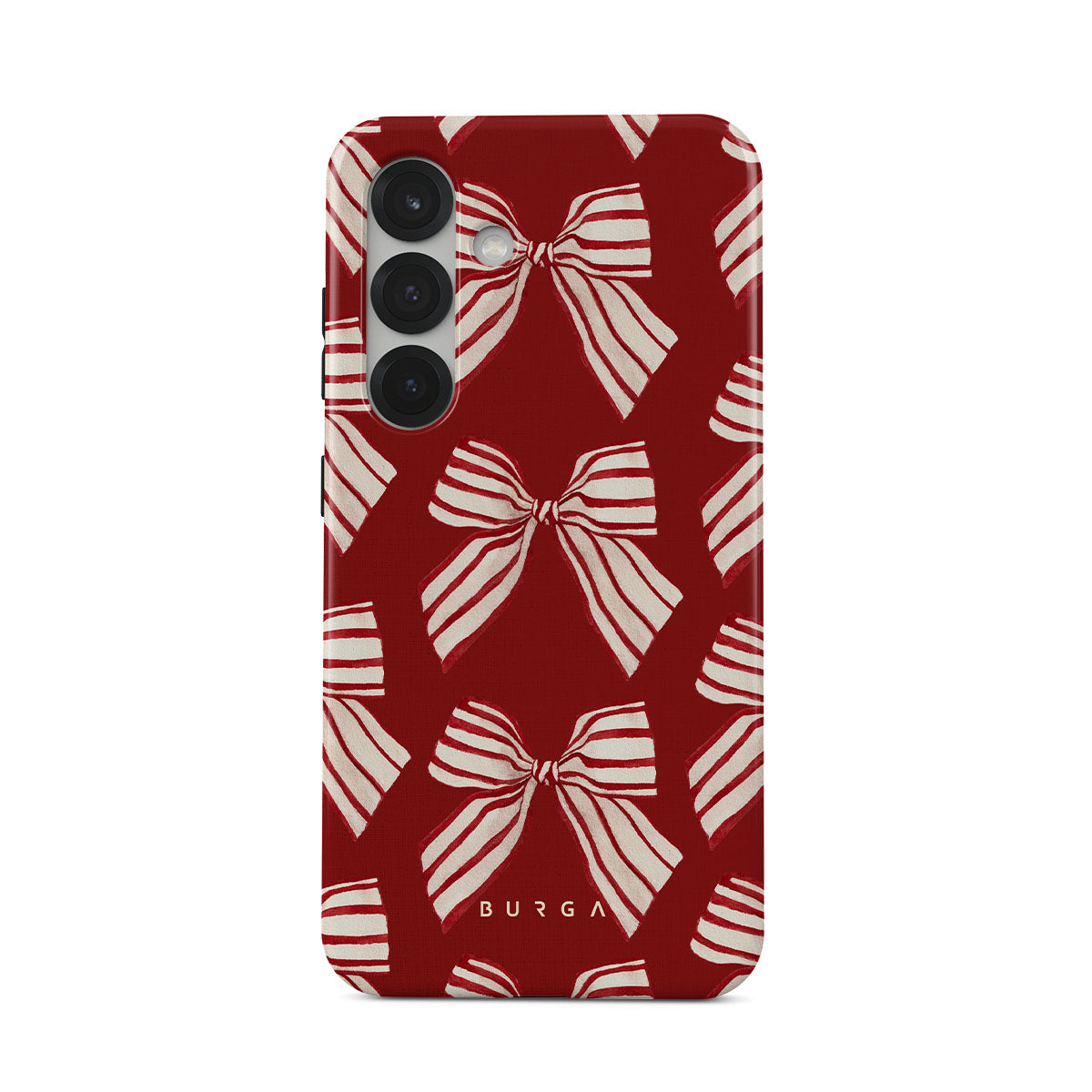 Elementi distintivi: fiocchi, nastri, rosso, bianco, motivo natalizio