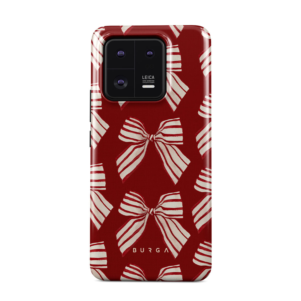 Elementi distintivi: fiocchi, nastri, rosso, bianco, motivo natalizio