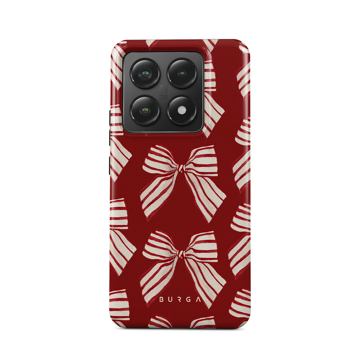 Elementi distintivi: fiocchi, nastri, rosso, bianco, motivo natalizio