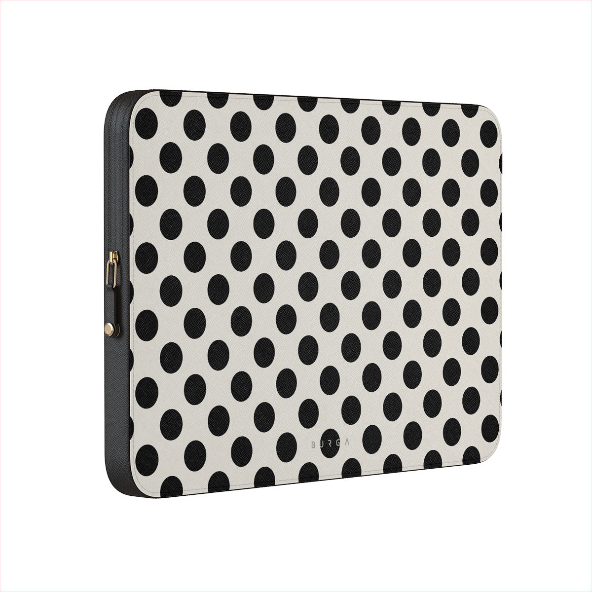 Questo design include: pois neri su uno sfondo bianco pulito.