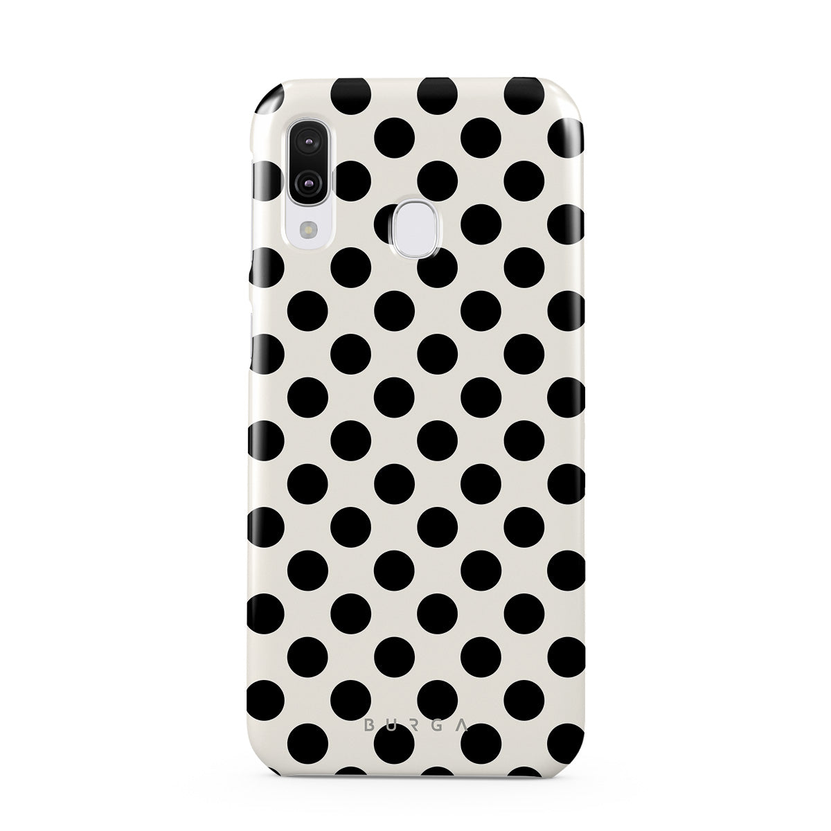 Questo design include: pois neri su uno sfondo bianco pulito.
