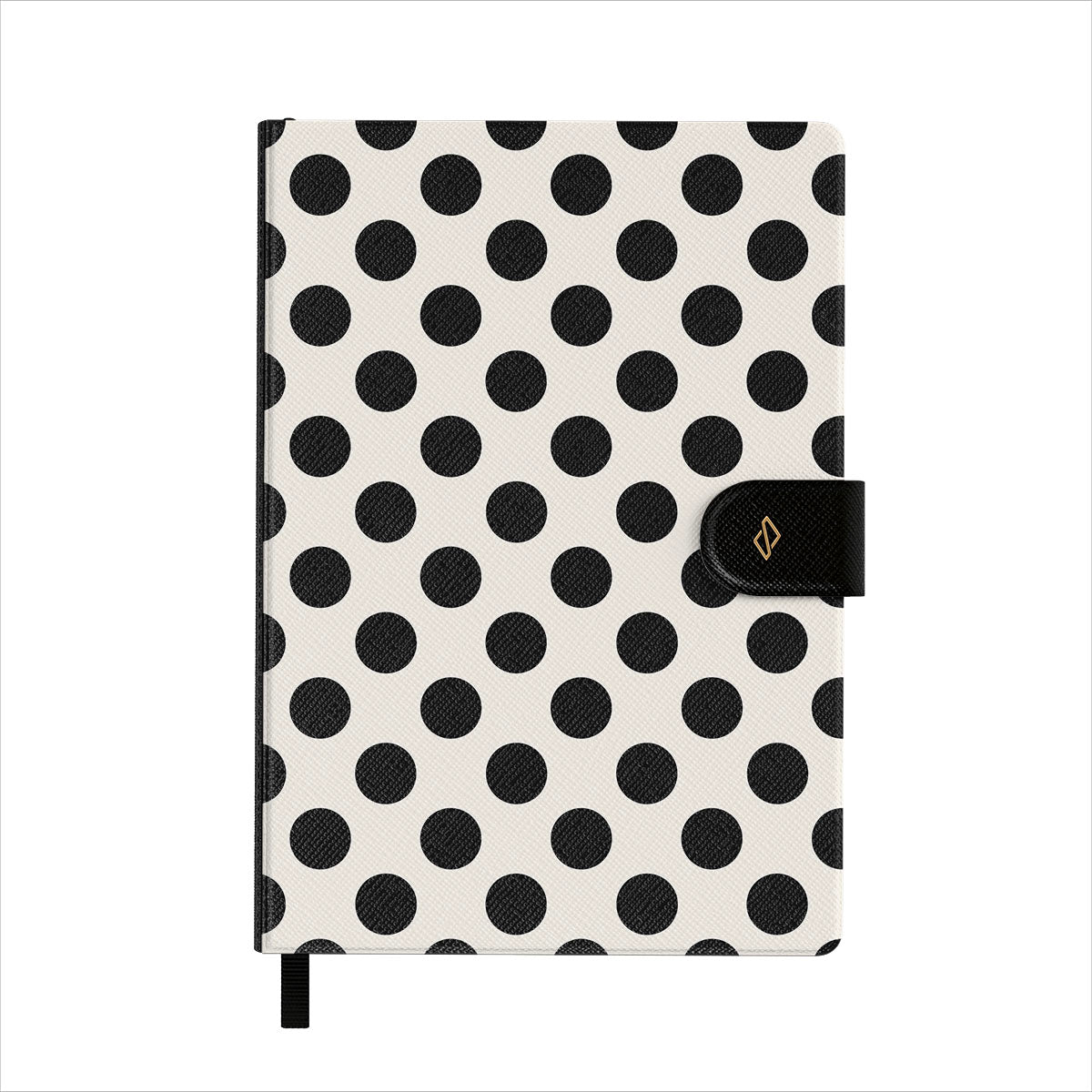 Questo design include: pois neri su uno sfondo bianco pulito.