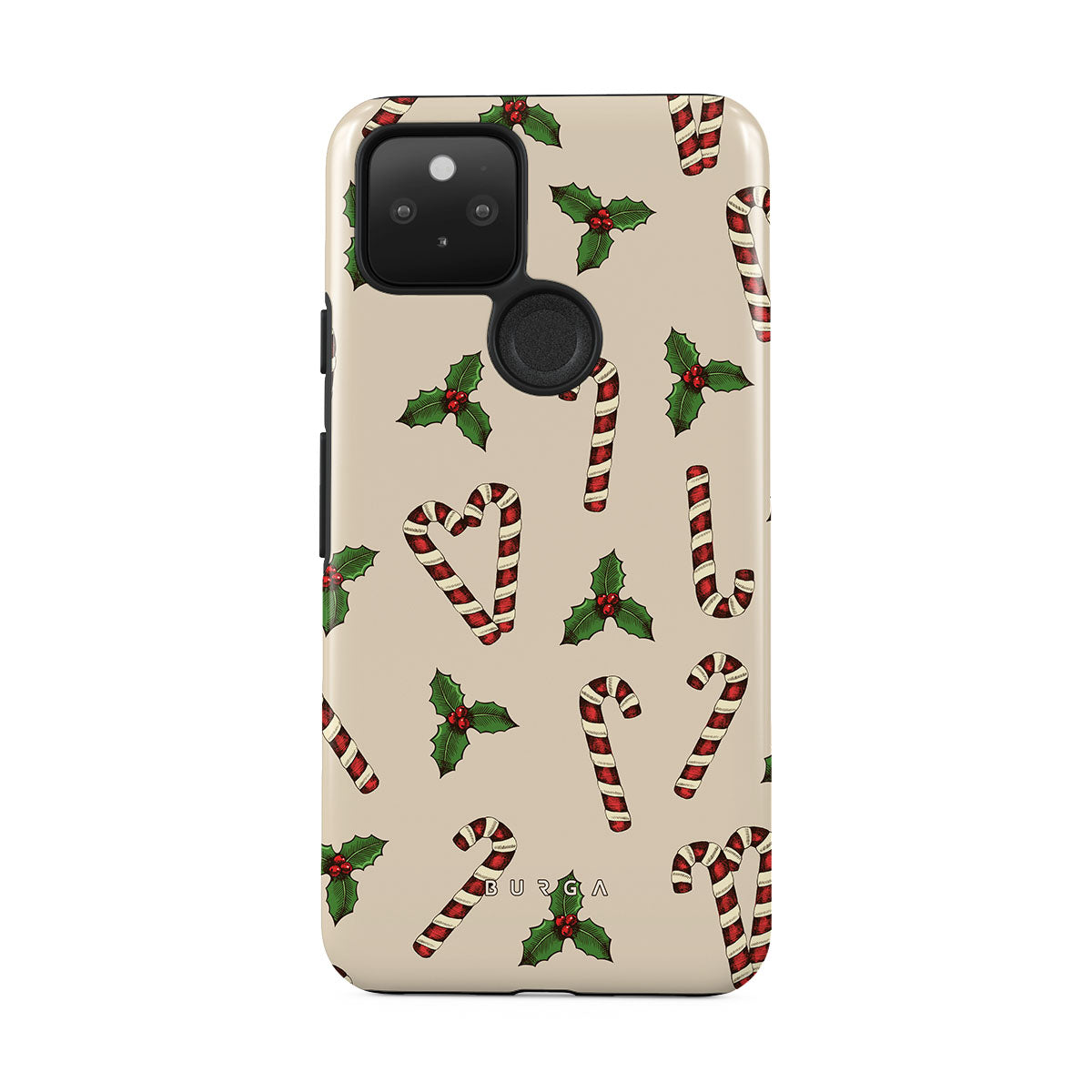 Elementi distintivi: bastoncini di zucchero, agrifoglio, verde, bianco, motivo festivo