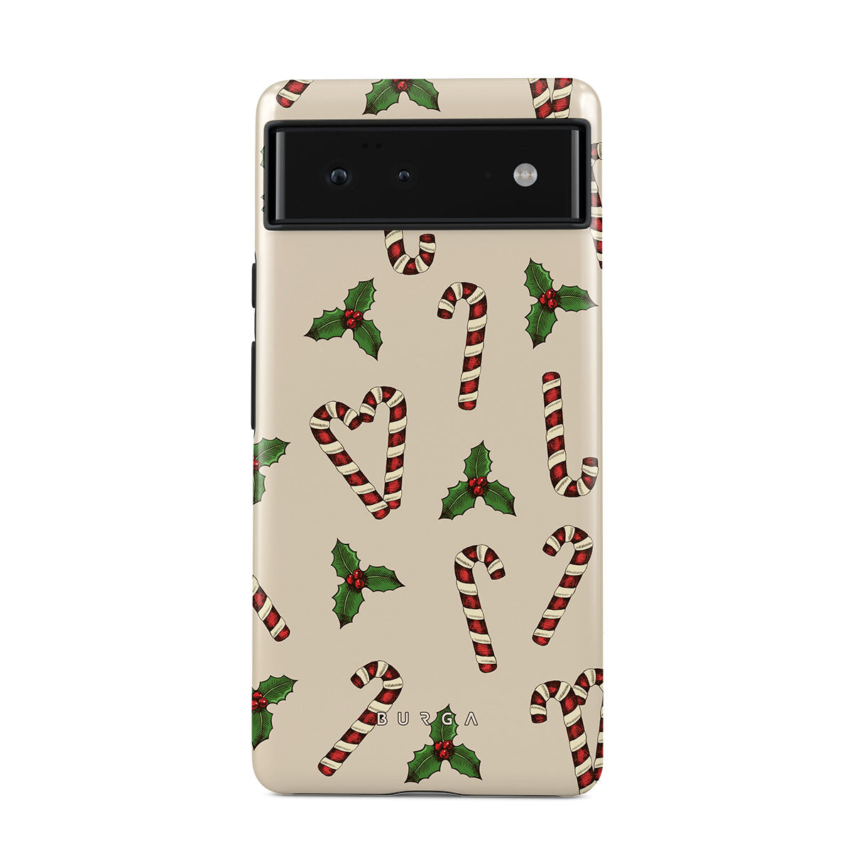 Elementi distintivi: bastoncini di zucchero, agrifoglio, verde, bianco, motivo festivo