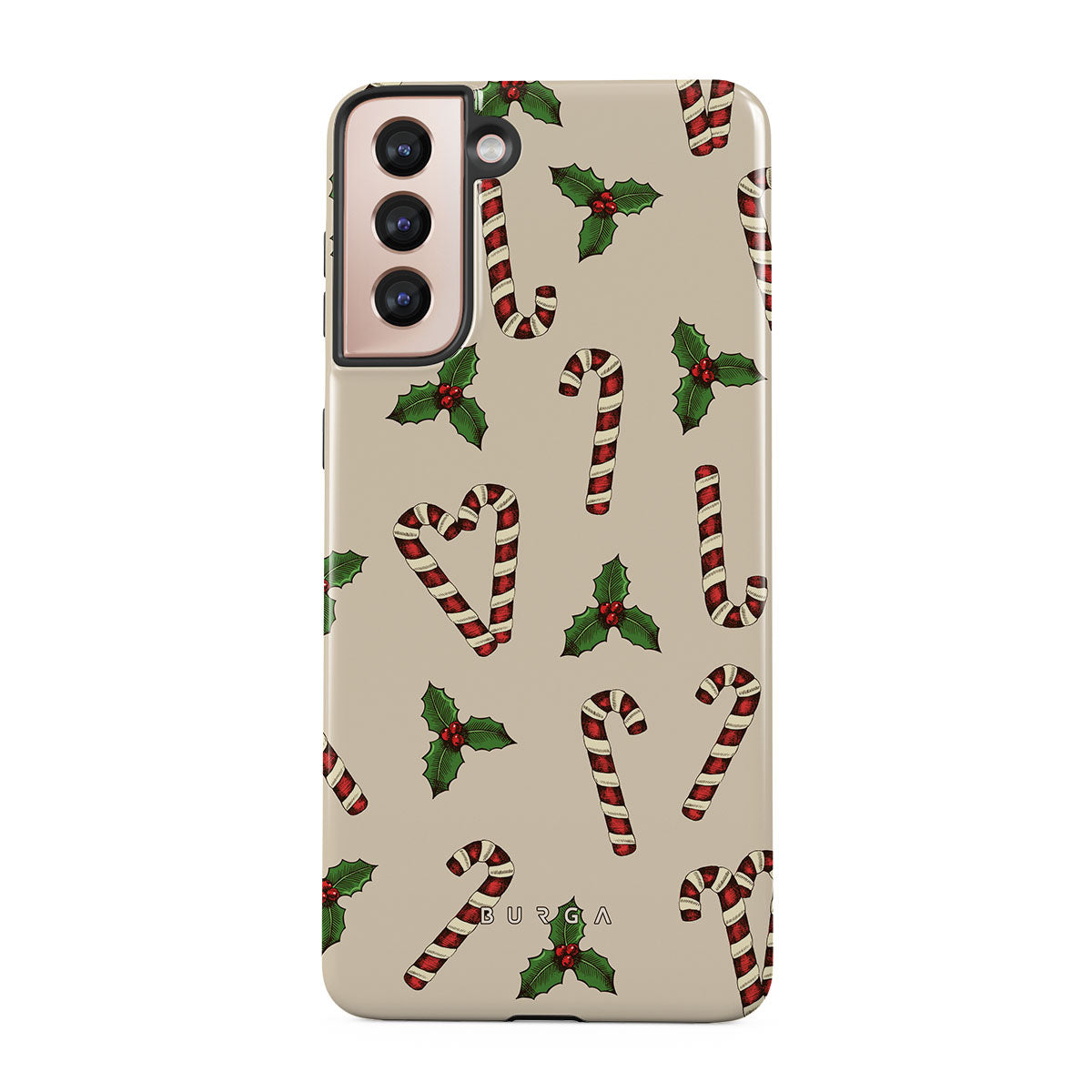 Elementi distintivi: bastoncini di zucchero, agrifoglio, verde, bianco, motivo festivo