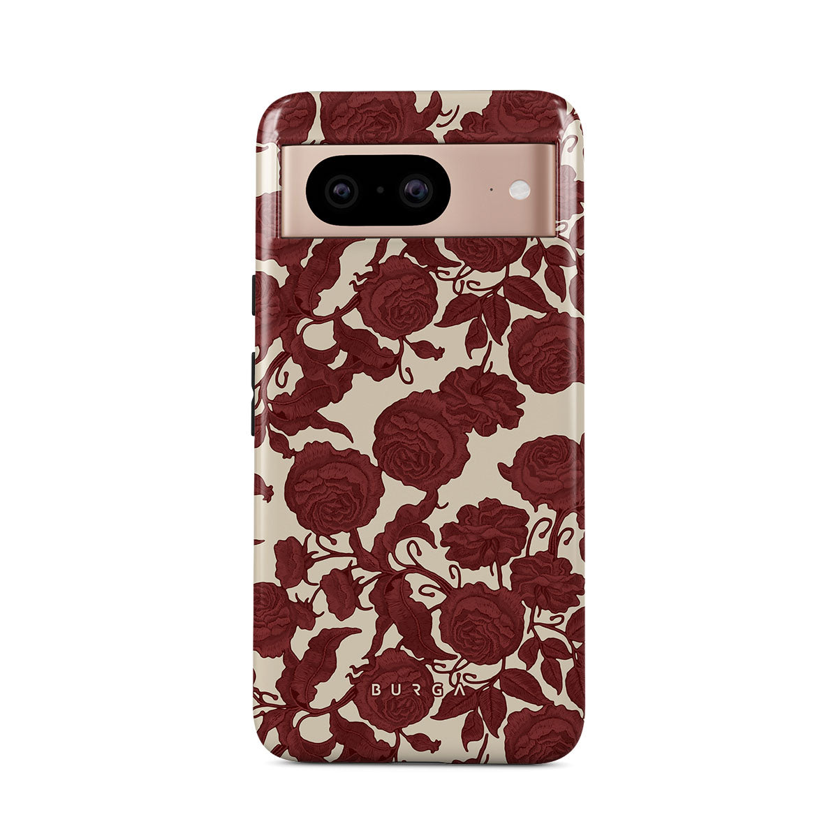 Questo design presenta: rose rosso scuro, motivo floreale intricato, motivo vintage.