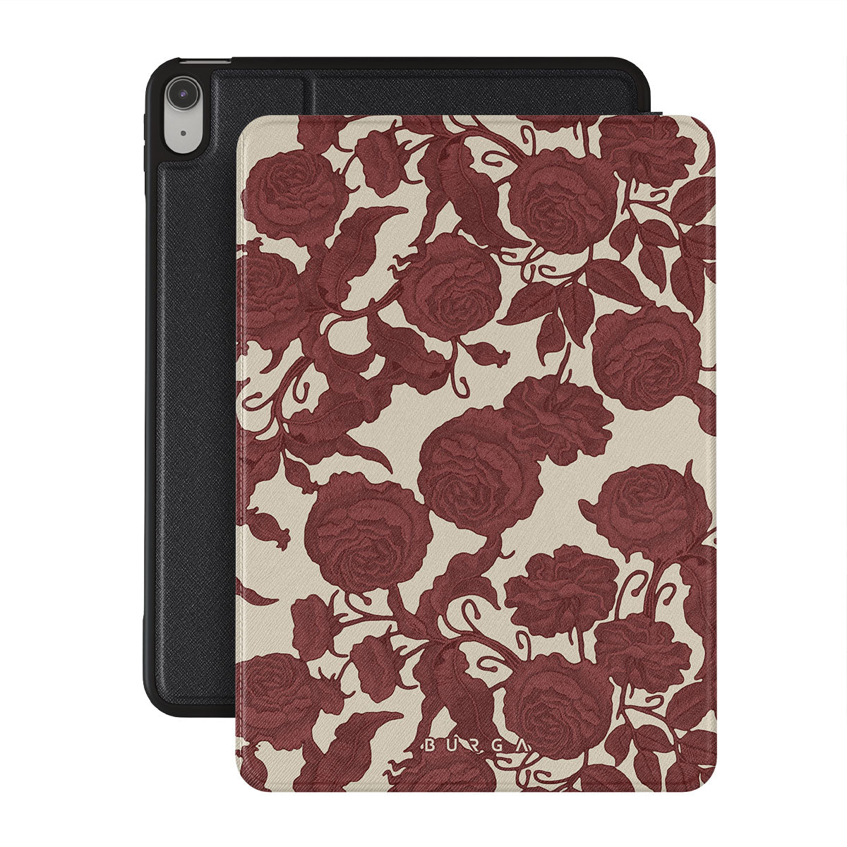 Questo design presenta: rose rosso scuro, motivo floreale intricato, motivo vintage.