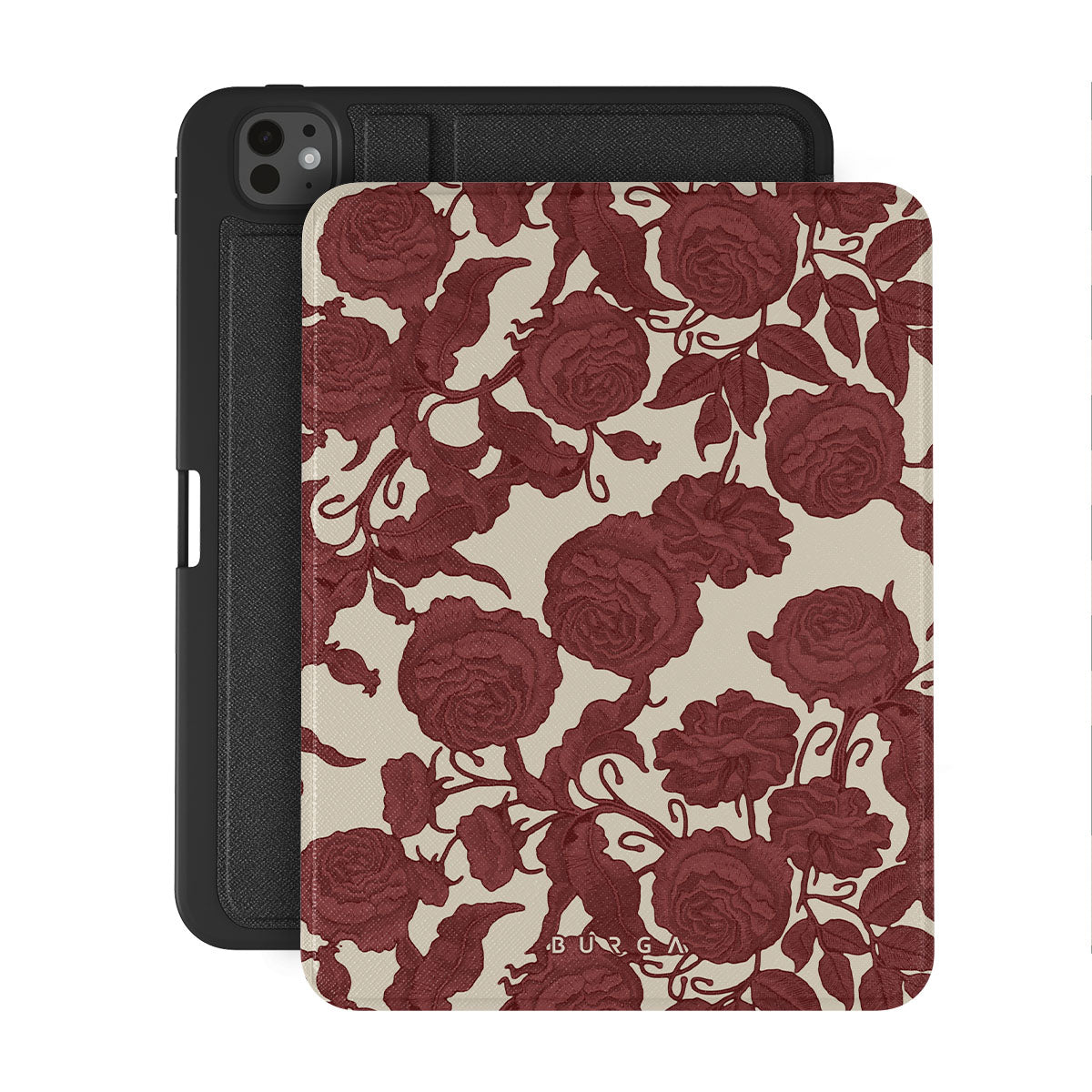 Questo design presenta: rose rosso scuro, motivo floreale intricato, motivo vintage.