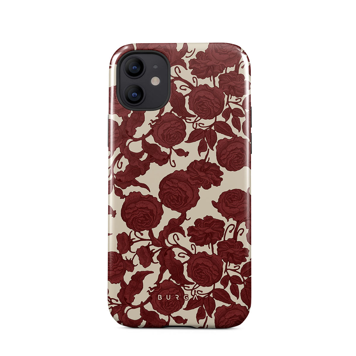 Questo design presenta: rose rosso scuro, motivo floreale intricato, motivo vintage.