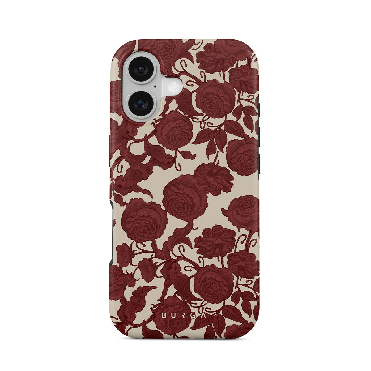 Questo design presenta: rose rosso scuro, motivo floreale intricato, motivo vintage.